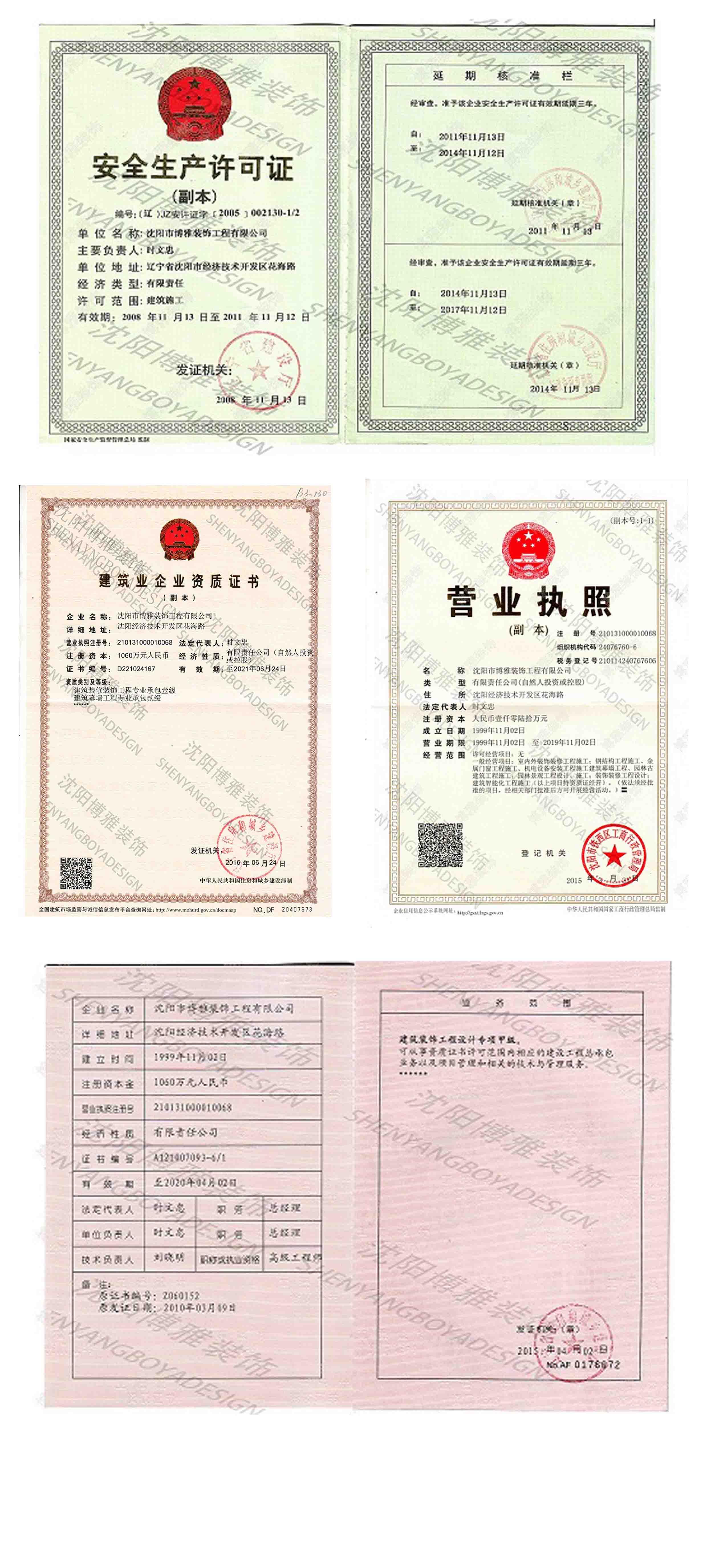 沈陽(yáng)市博雅裝飾工程有限公司于1994年組建誕生。注冊(cè)資金1060萬(wàn)元,裝飾設(shè)計(jì)甲級(jí)資質(zhì),建筑裝飾裝修業(yè)中同時(shí)具備國(guó)家建筑裝飾施工一級(jí),建筑幕墻工程貳級(jí),鋼結(jié)構(gòu)工程叁級(jí),“雙甲”資質(zhì)的企業(yè)。